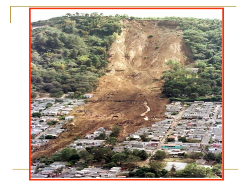 Слайд 3Оползень – смещение масс горных пород по склону под воздействием собственного