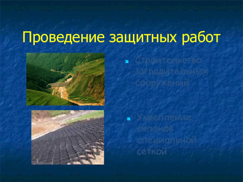 Строительство заградительных сооруженийУкрепление склонов специальной сеткойПроведение защитных работ