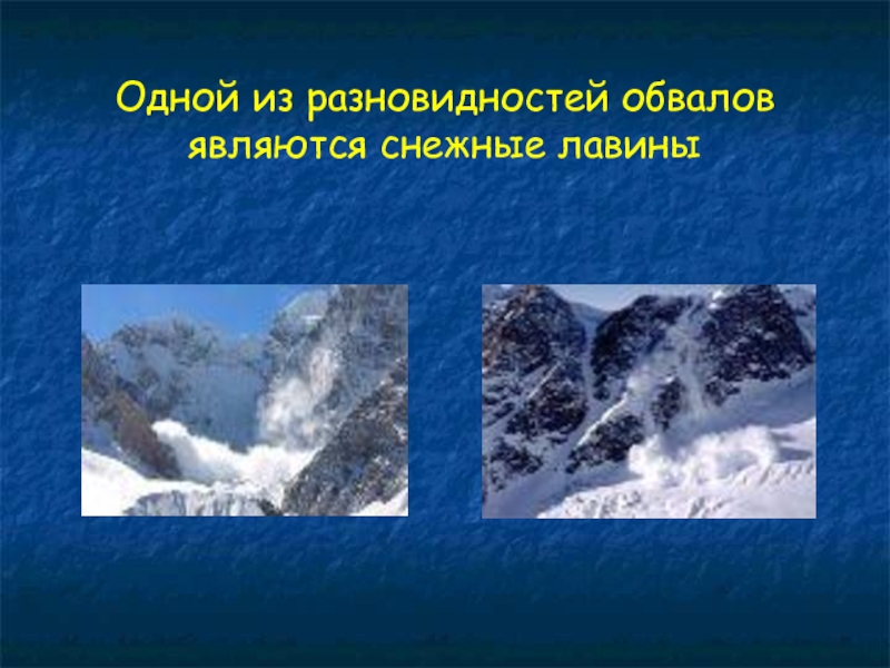 Слайд 27Одной из разновидностей обвалов являются снежные лавины