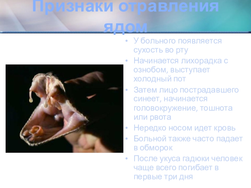 Слайд 7Признаки отравления ядом