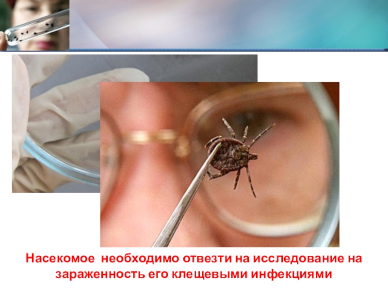 Слайд 19Насекомое необходимо отвезти на исследование на зараженность его клещевыми инфекциями