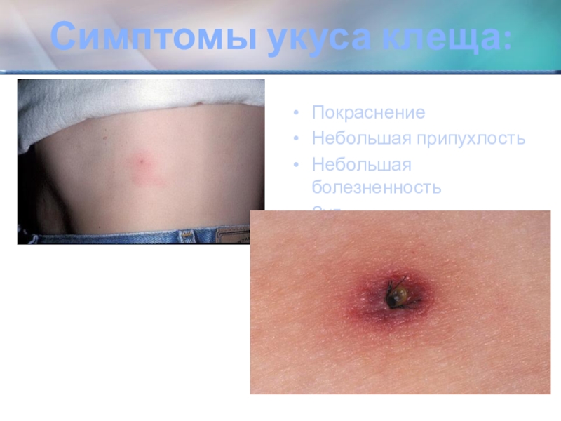 Слайд 16Симптомы укуса клеща: