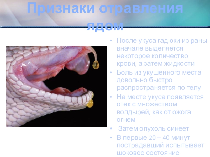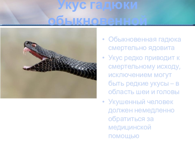Слайд 6Укус гадюки обыкновенной