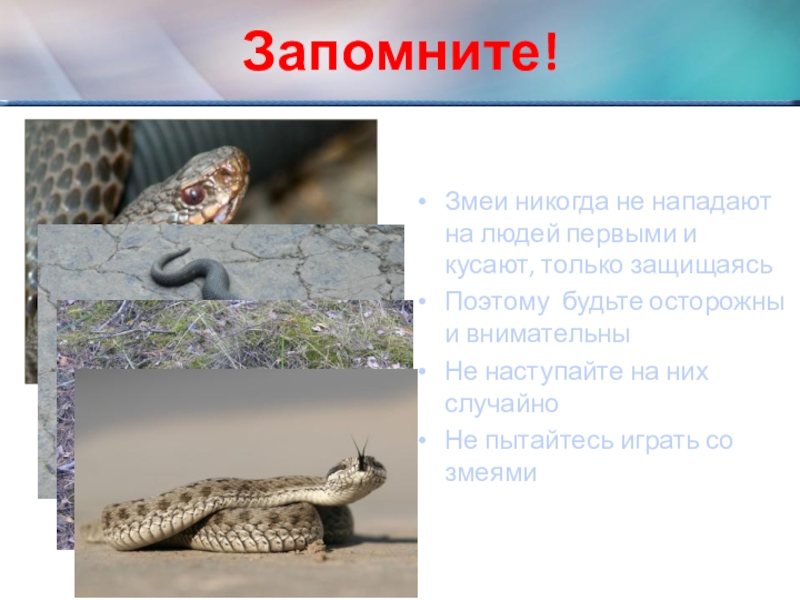 Змеи никогда не нападают на людей первыми и кусают, только защищаясь