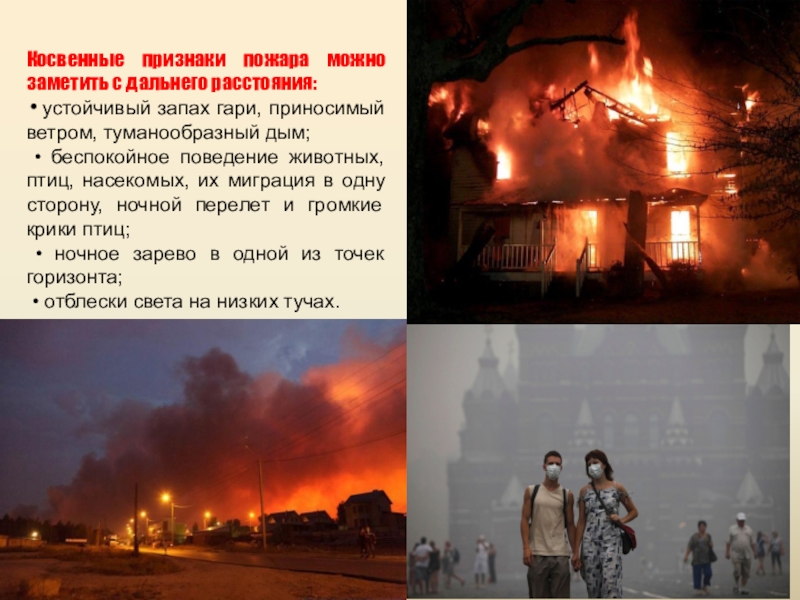 Слайд 23Косвенные признаки пожара можно заметить с дальнего расстояния: