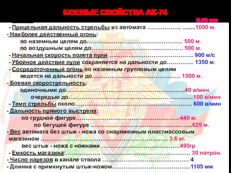 БОЕВЫЕ СВОЙСТВА АК-74
