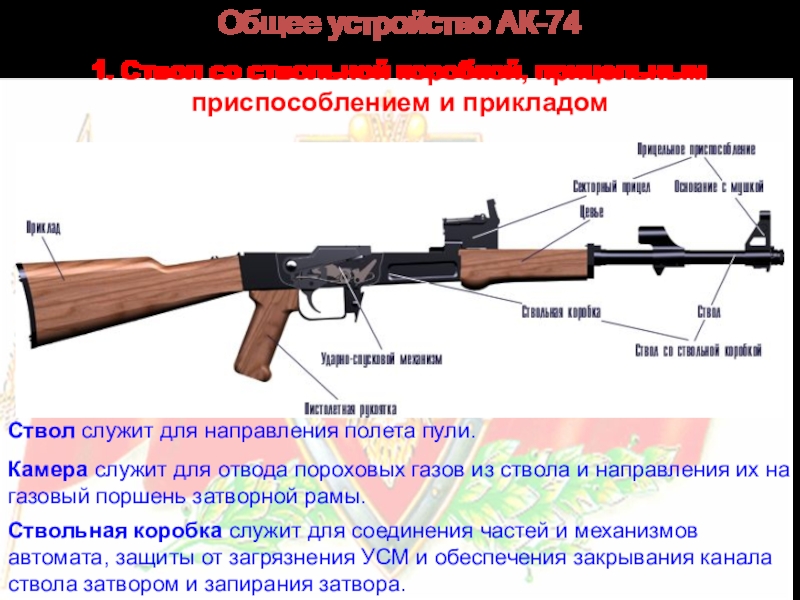 Назначение, боевые свойства, общее устройство АК-74. Назначение частей и