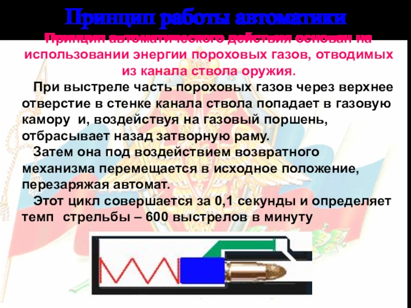 Принцип автоматического действия основан на использовании энергии пороховых газов,