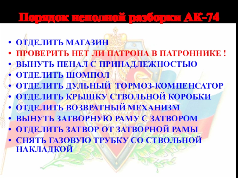 Слайд 31Порядок неполной разборки АК-74