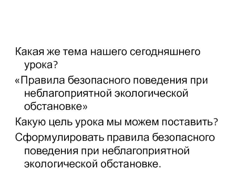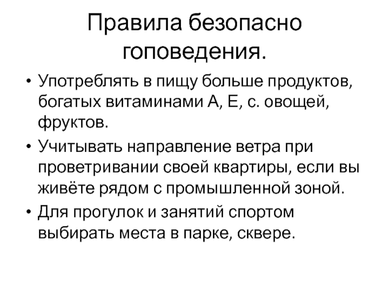 Слайд 1Правила безопасного поведения при неблагоприятной экологической обстановке