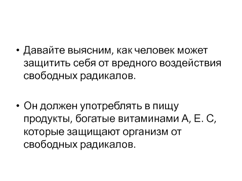 Слайд 21Давайте выясним, как человек может защитить себя от вредного воздействия свободных