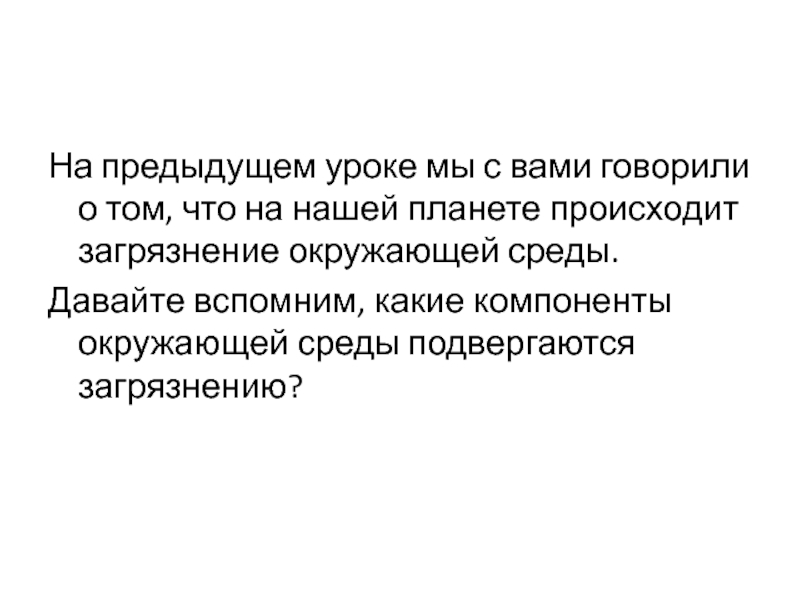 Давайте вспомним, какие компоненты окружающей среды подвергаются загрязнению?