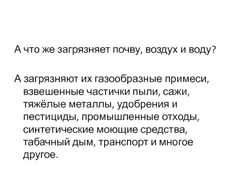 Слайд 6А что же загрязняет почву, воздух и воду?