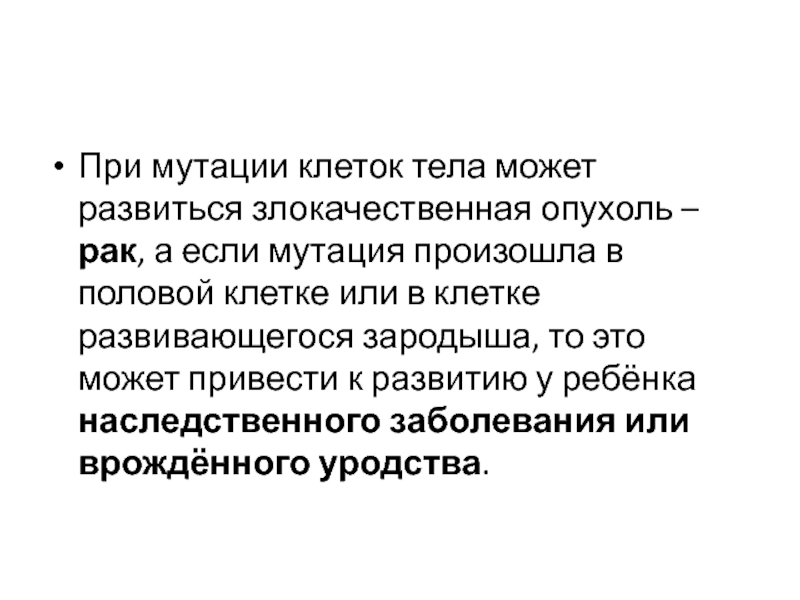 Слайд 9При мутации клеток тела может развиться злокачественная опухоль – рак, а