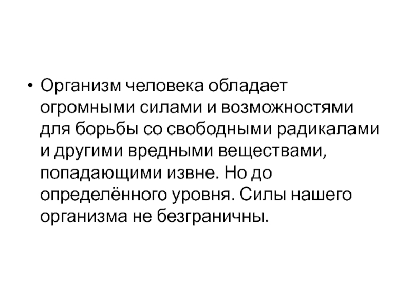 Слайд 18Организм человека обладает огромными силами и возможностями для борьбы со свободными