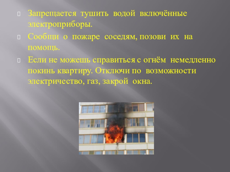 Слайд 3Запрещается тушить водой включённые электроприборы.