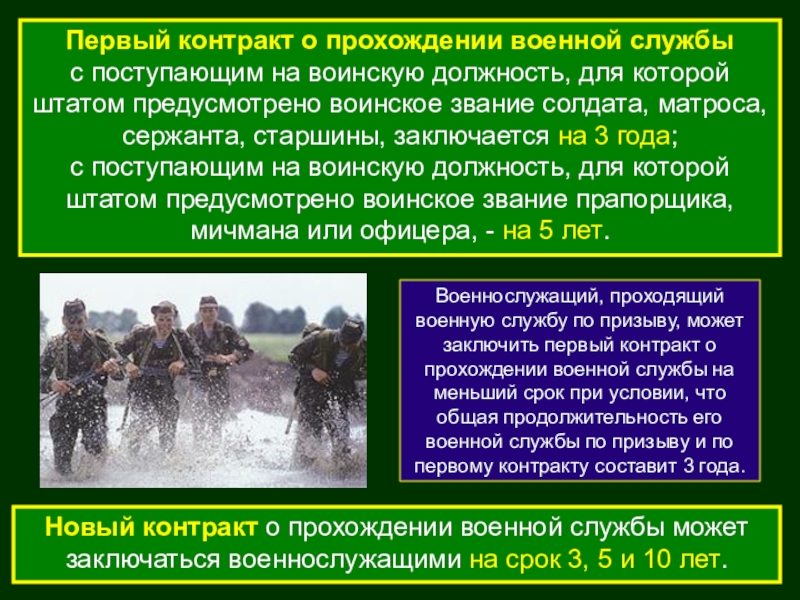 Новый контракт о прохождении военной службы может заключаться военнослужащими на срок 3, 5 и 10 лет.