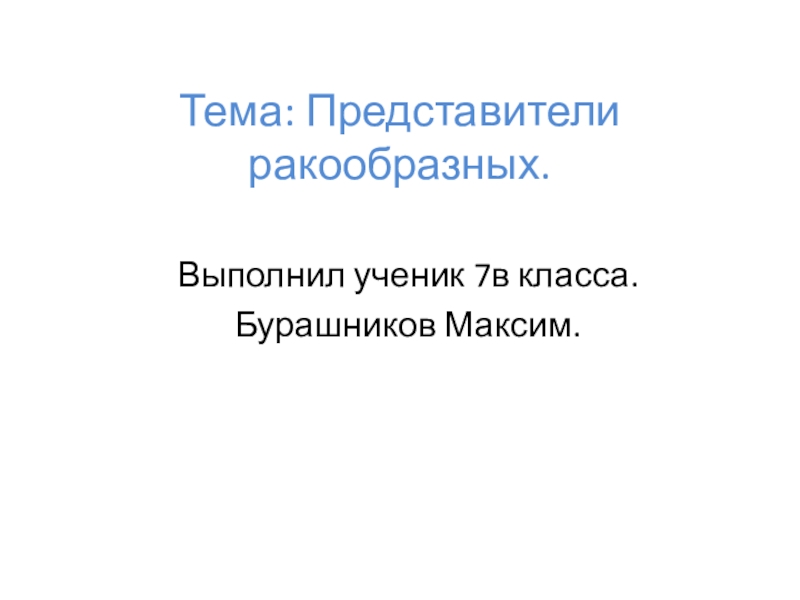 Тема: Представители ракообразных.Выполнил ученик 7в класса.Бурашников Максим.