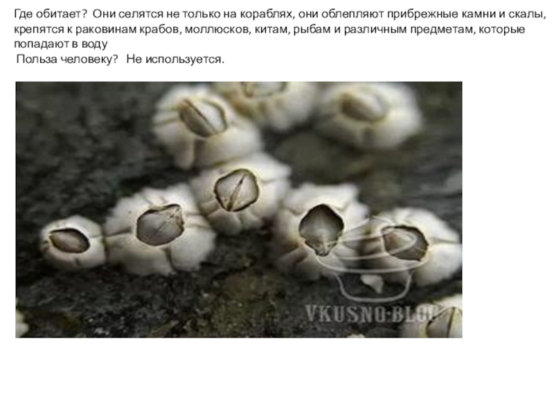 Слайд 12Где обитает? Они селятся не только на кораблях, они облепляют прибрежные