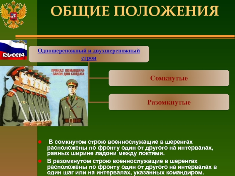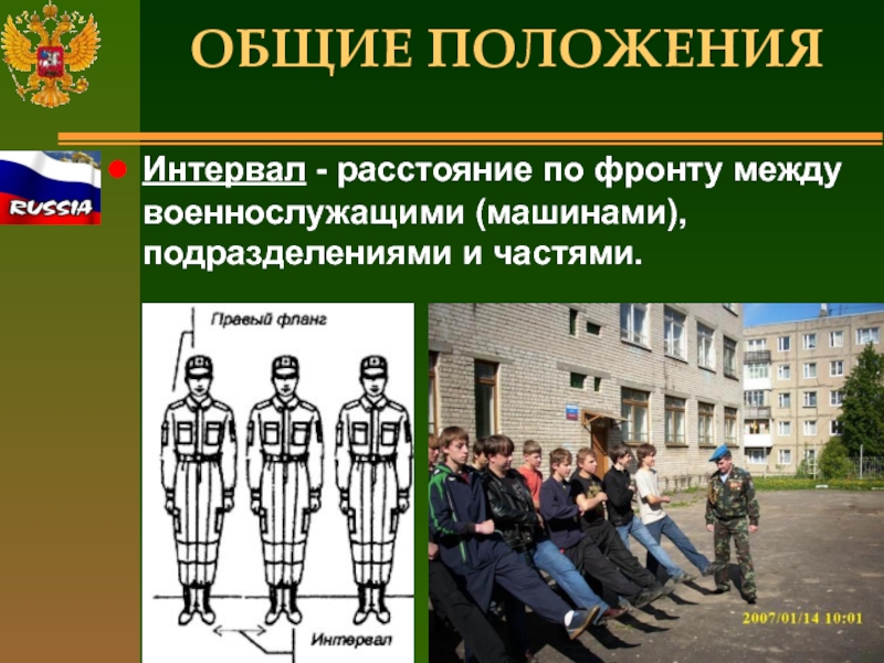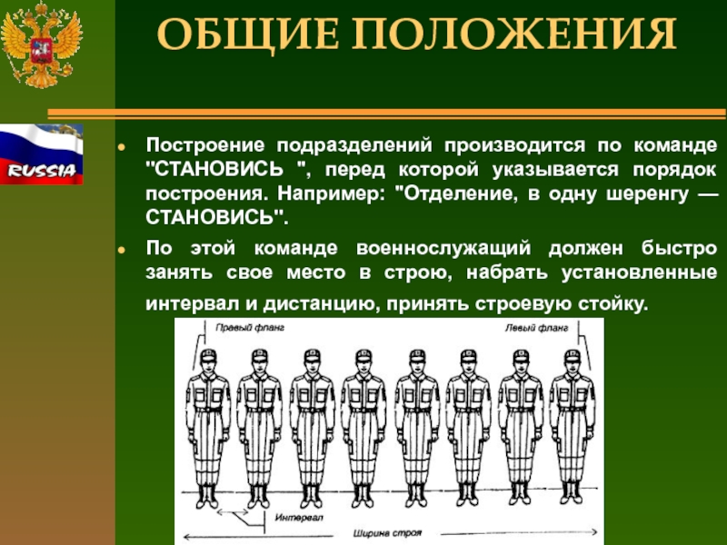 По этой команде военнослужащий должен быстро занять свое место в строю, набрать установленные интервал и дистанцию, принять строевую стойку.