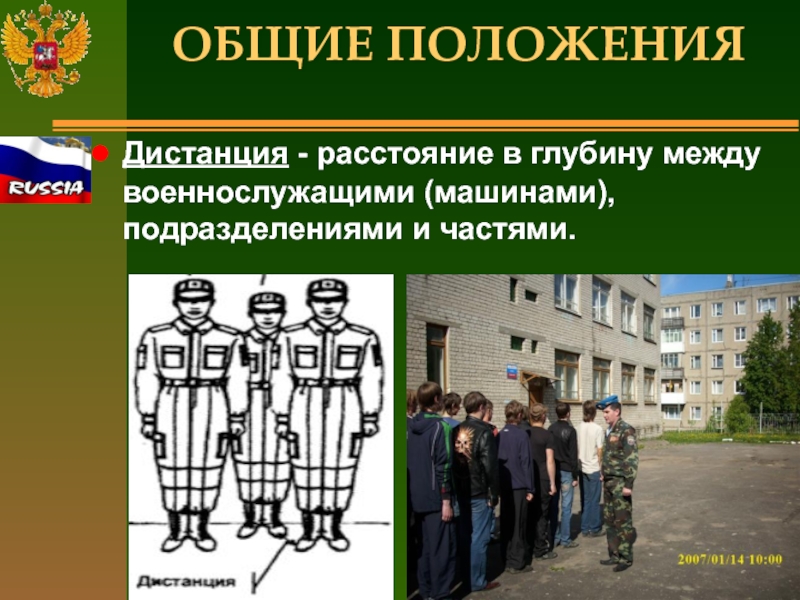 Дистанция - расстояние в глубину между военнослужащими (машинами), подразделениями и