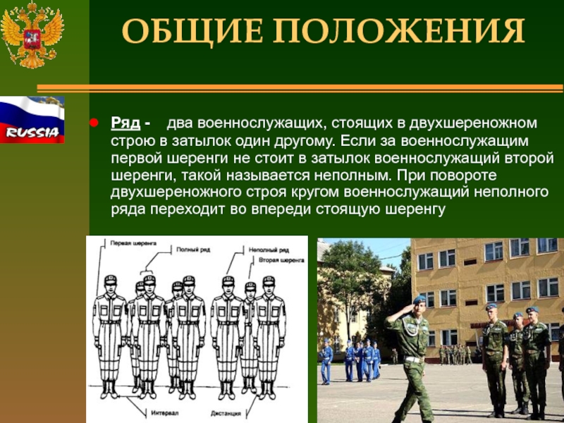 Ряд - два военнослужащих, стоящих в двухшереножном строю в
