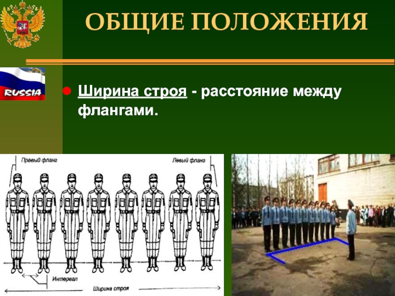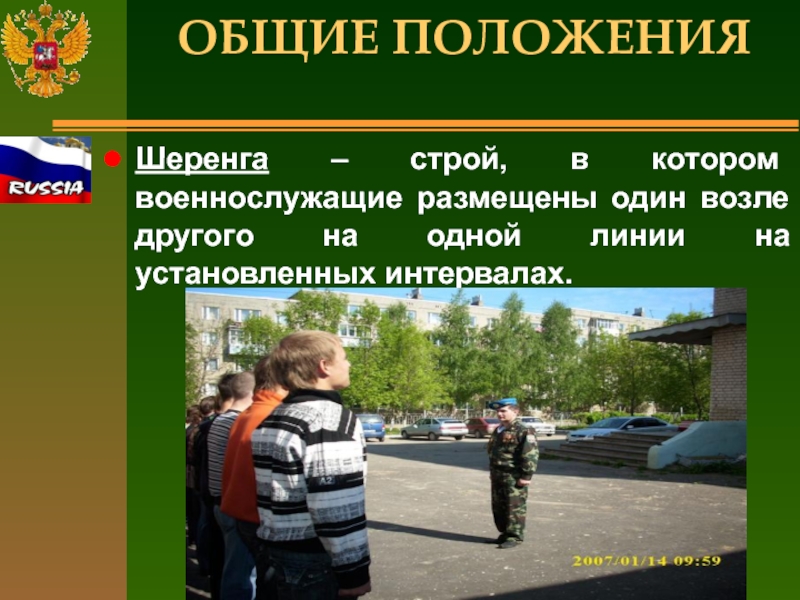 Шеренга – строй, в котором военнослужащие размещены один возле другого