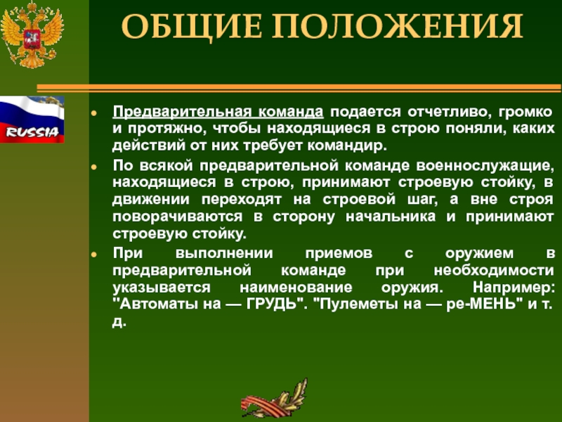 Предварительная команда подается отчетливо, громко и протяжно, чтобы находящиеся в