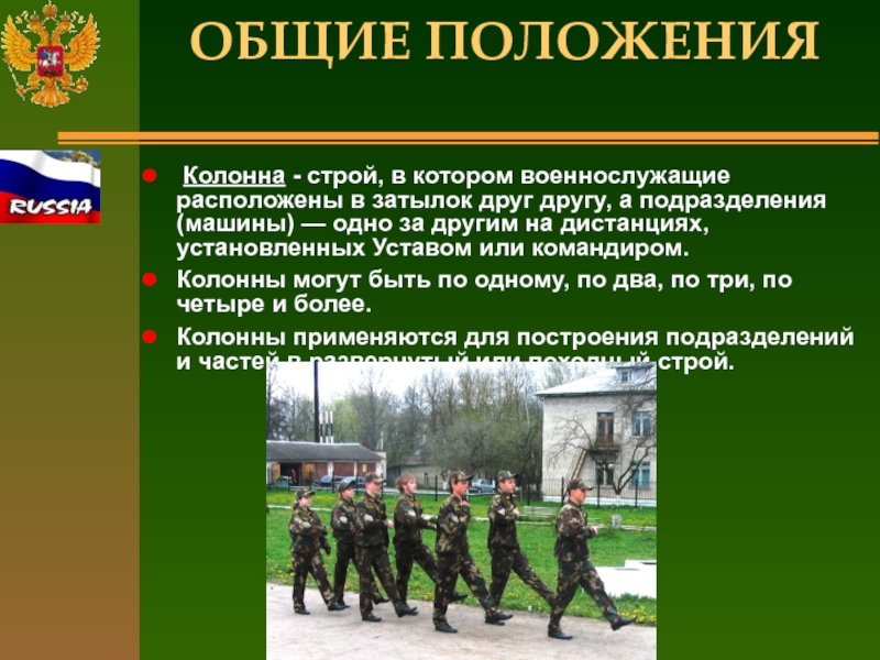 Колонна - строй, в котором военнослужащие расположены в затылок