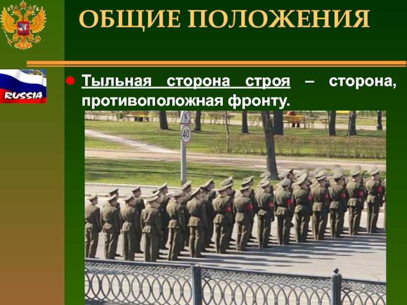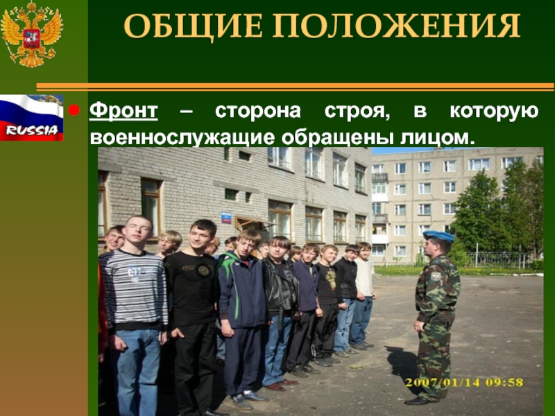Фронт – сторона строя, в которую военнослужащие обращены лицом.