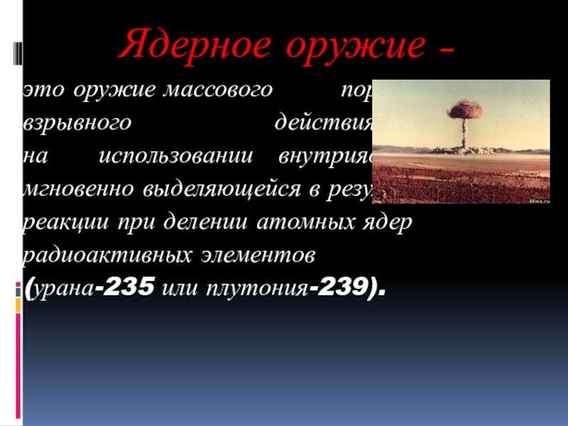 Первую атомную бомбу приготовили в США к середине 1945 г.; Работы по созданию бомбы возглавлял Роберт Оппенгеймер (1904-1967 гг.).
