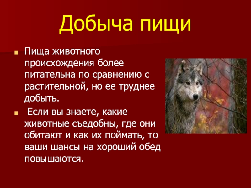 Если вы знаете, какие животные съедобны, где они обитают и как их поймать, то ваши шансы на хороший обед повышаются.