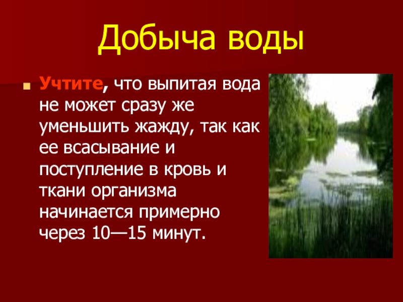 Учтите, что выпитая вода не может сразу же уменьшить жажду,