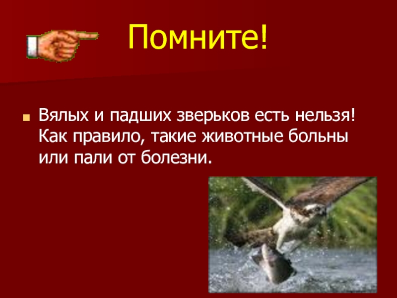 Вялых и падших зверьков есть нельзя! Как правило, такие животные больны