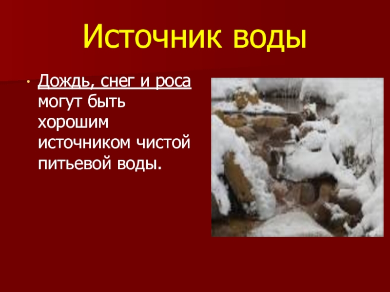 Дождь, снег и роса могут быть хорошим источником чистой питьевой