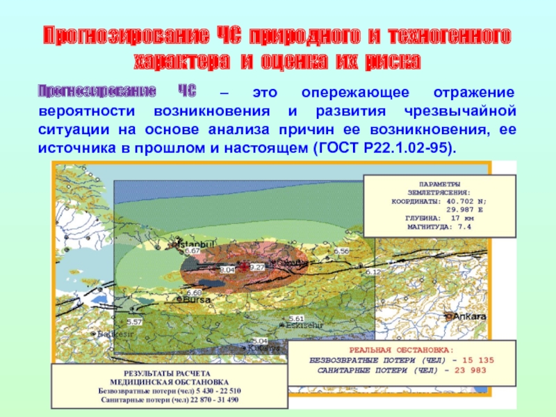 возникновения ЧС, возможного места и возможной мощности явления, которое может ее вызвать.