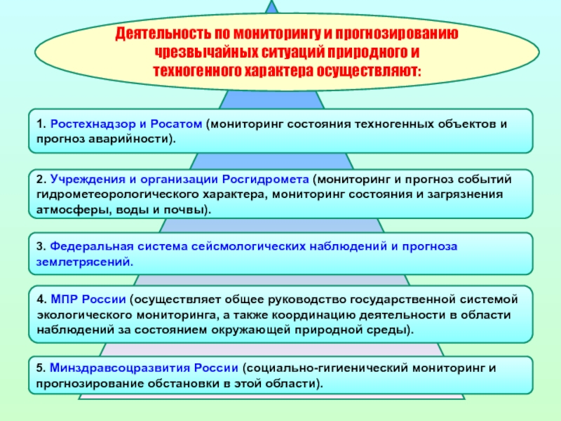 4. МПР России (осуществляет общее руководство государственной системой экологического мониторинга, а также координацию деятельности в области наблюдений за состоянием окружающей природной среды).