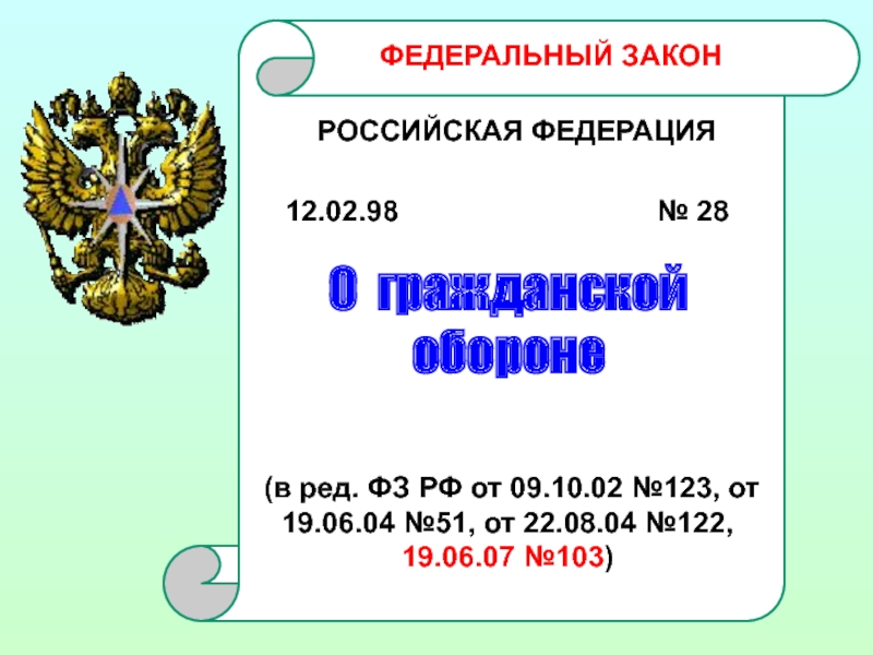 ФЗ РФ « О Гражданской обороне» от 12.02.98 г. № 28