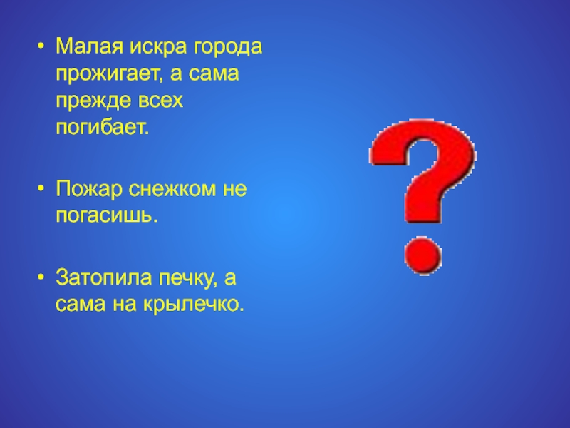 Слайд 30Малая искра города прожигает, а сама прежде всех погибает.