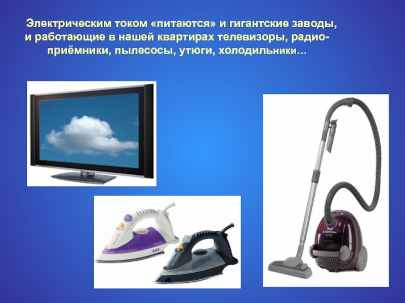 Слайд 9 Электрическим током «питаются» и гигантские заводы,
