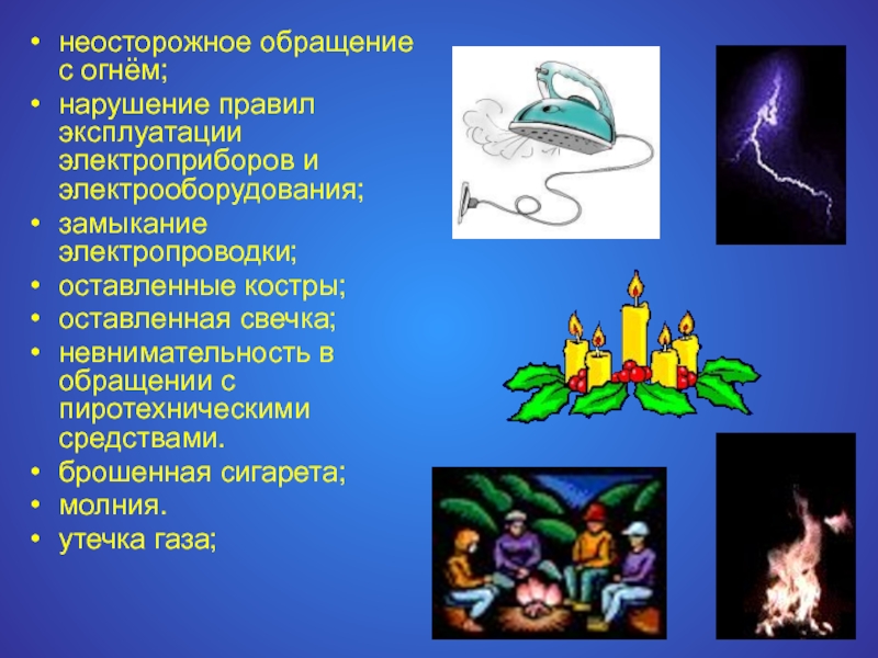 нарушение правил эксплуатации электроприборов и электрооборудования;