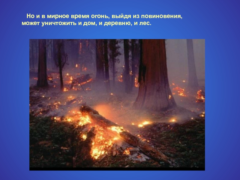 Слайд 21 Но и в мирное время огонь, выйдя из повиновения,