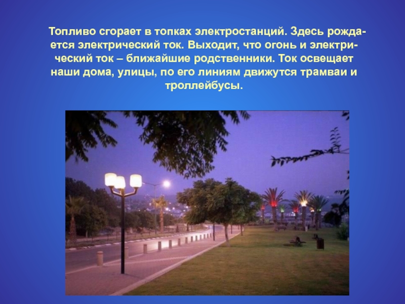 Слайд 8 Топливо сгорает в топках электростанций. Здесь рожда-