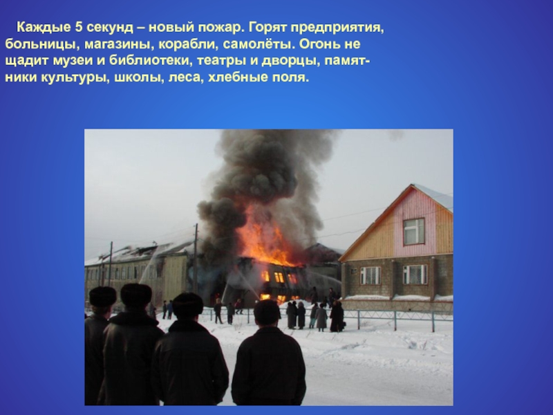Слайд 18 Каждые 5 секунд – новый пожар. Горят предприятия,