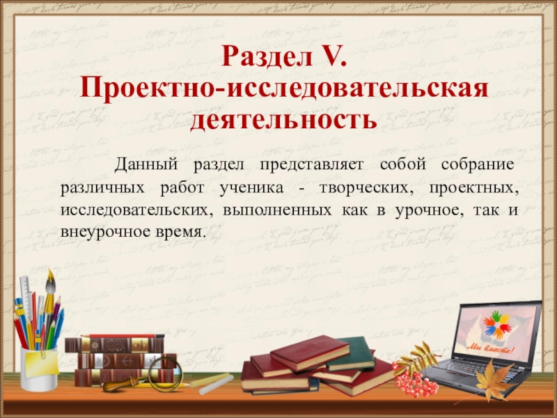 Слайд 16 Данный раздел представляет собой собрание различных работ ученика -