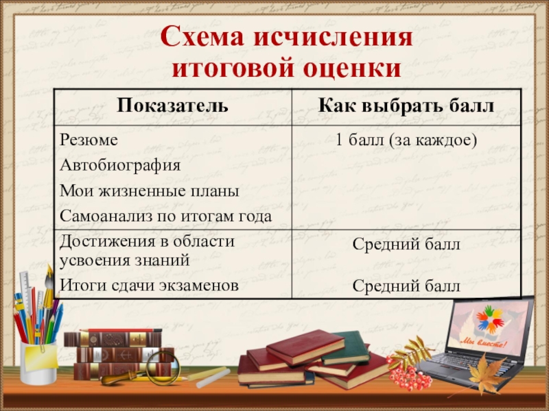 в конце учебного года будет проведен анализ портфолио и исчисление итоговой оценки личных достижений обучающегося, которая фиксируется в итоговой ведомости.