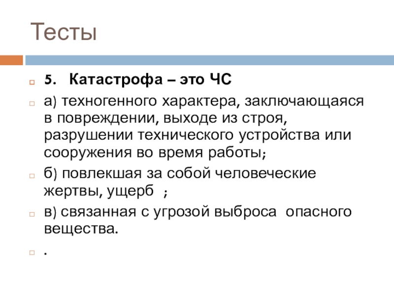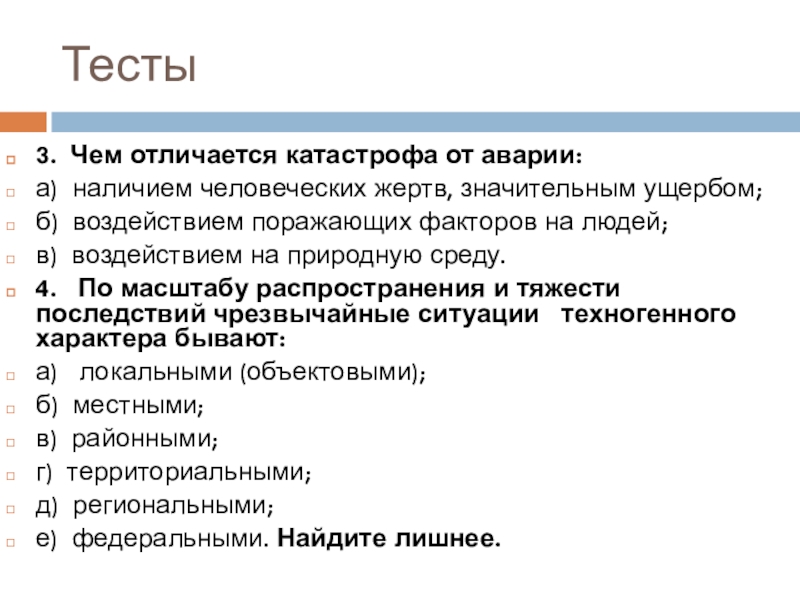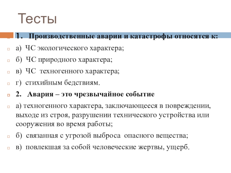 Тема. Классификация чрезвычайных ситуаций техногенного характера