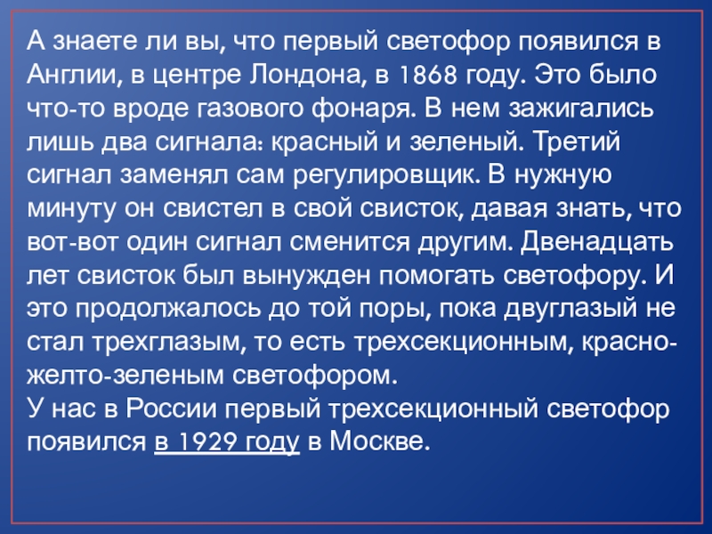 Слайд 2А знаете ли вы, что первый светофор появился в Англии, в