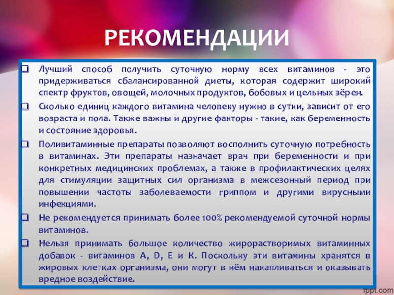 Слайд 20РЕКОМЕНДАЦИИ