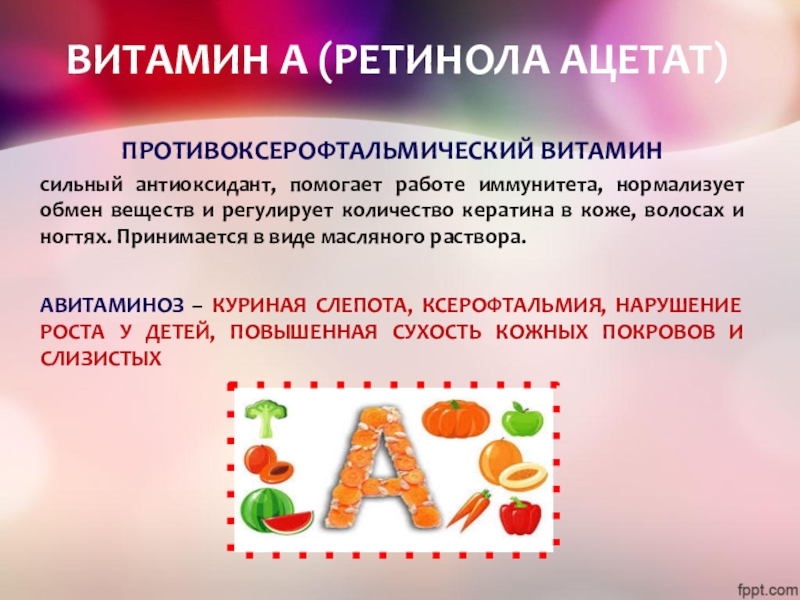 Слайд 7ВИТАМИН А (РЕТИНОЛА АЦЕТАТ)
